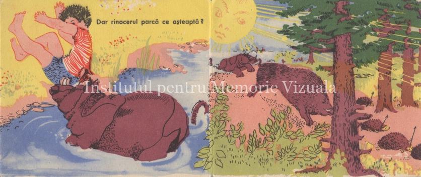 Restul de 14 pagini sunt organizate în șapte deschideri a câte două pagini fiecare, patru pe prima parte a cărții burduf, trei pe cea de a doua. Iar fiecare deschidere spune o poveste în doi timpi, premisă în stânga și concluzie în dreapta. Apare astfel ca o veritabilă carte de benzi desenate, una din puținele apărute în timpul Primei Republici, cea Populară…