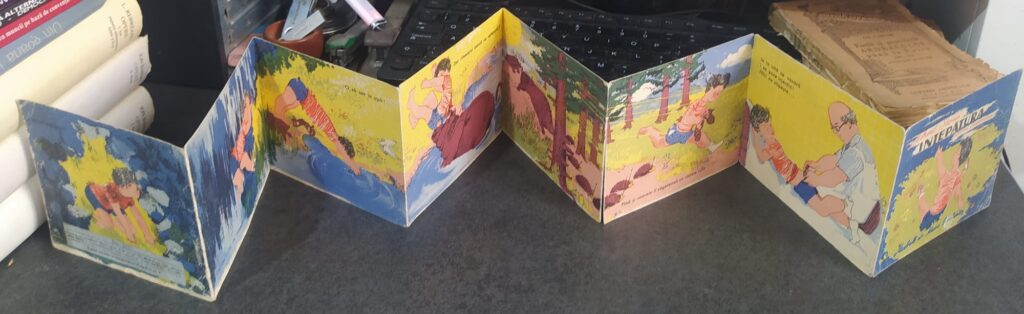 Un exemplu de carte bibliofilă rară, și chiar de carte experiment, este Înțepătura, carte acordeon pentru copii scrisă de Mihail Stoian (1925-2005), scriitor prolific de literatură pentru copii și adolescenți, și ilustrată de Maria Constantin (1926-2012), desenatoare și acuarelistă de talent din cercul Evei Cerbu, al lui Yvonne Hassan și al Almei Redlinger, și soră bună a poetei Veronica Porumbacu…