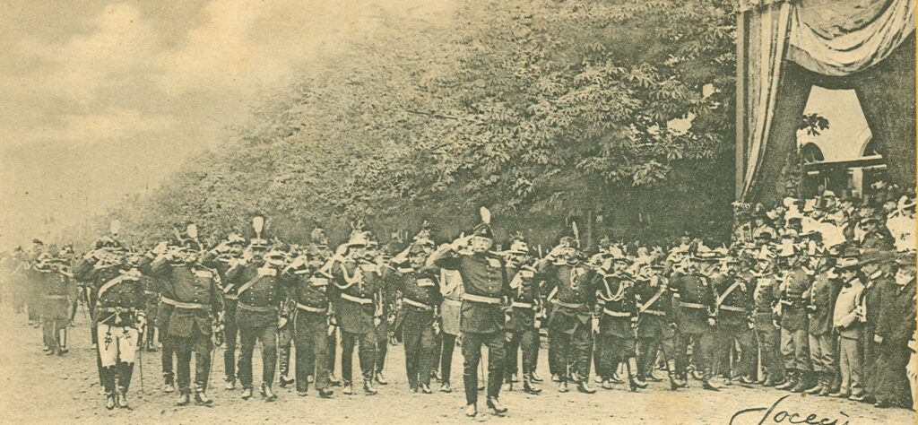 Ce diferență față de vizita împăratului Franz Josef la București, din anul 1896! Într-o suită de fotografii cortegiul festiv al acestuia este surprins pe străzile Bucureștiului, cu naturalețe și detalii. Este, credem, primul reportaj fotografic bucureștean cu adevărat dinamic. Adică un prim fotoreportaj. La rândul lor, din 1897 defilările de 10 mai vor fi, la rândul lor, fotografiate an de an, spre decliciul consumatorului de imagini. Fotografia se democratizează. Două colecții de cărți poștale, Spada și Trompeta, înfățișțează cu minuție și talent defilările militare de 10 mai, cu regele Carol I în frunte, urmărite de mai toți bucureștenii.