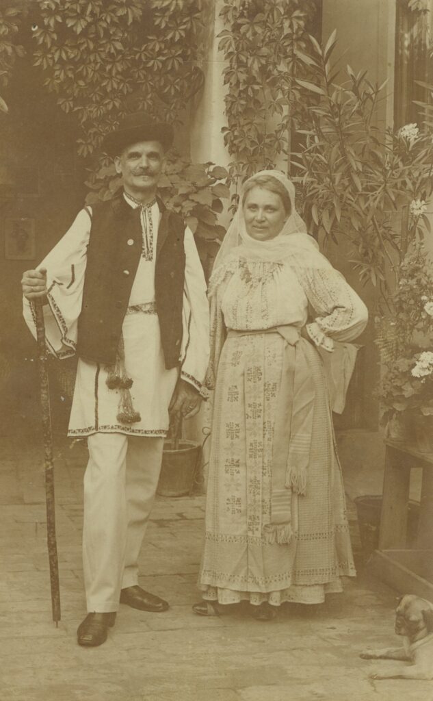 Fruntea acestor sate era formată din țărani slabi și vânoși, eleganți după normele unei ordini tradiționale, chiar dacă acum ni se par insoliți în hainele lor de târg, care erau totuși haine de muncă, și nu de dumnică sau de sărbătoare. Ei bine, câțiva din acești țărani întreprinzători și cu dare de mână vor fi veritabili vizionari sociali, și cu o înțelepciune practică de admirat își vor trimite pe la 1880 și 1890 copii la școală pe cheltuiala lor, copii care vor deveni învățători pe la 1900, iar după 1918 vor forma osatura de cadre a Partidului Țărănesc al lui Ion Mihahache. Până ca băieții lor să ajungă miniștri în România Mare, țăranii aceștia cuprinși și întreprinzători își vor afirma din ce în ce rolul și importanța socială în creștere, iar pe la 1895 vor începe să se fotografieze și ei în ateliere fotografice de la Moși. Numărul lor era mai mic decât al mahalagiilor, dar erau la fel de hotărâți ca aceștia să își afirme noua centralitate socilă prin adoptarea noii mode a fotografiatului. Zece ani mai târziu un proces similar de afirmare a rolului social al țărănimii bogate devine vizibil la Pitești, unde aceasta se fotografiază fără complexe în principalele ateliere fotografice ale orașului. Ceea ce totuși la București nu se va întâmpla niciodată. Cei care erau vechili ai moșiilor boierești și veneau, câteodată cu nevasta, să aducă banii și produsele cuvenite, erau însă câteodată imortalizați de fotograful amator al familiei, din aceeași sete de senzațional romanțios pe care l-a ilustrat atât de bine Alexandru Bellu. Aici cuplul de țărani cuprinși este surprins în haine de sărbătoare, și în picioare cu pantofi: burghezia rurală în devenire.