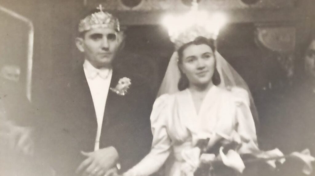 Și, în plus față de obișnuita iconografie a nunților familiilor înaltei burghezii românești, fotograful a potrivit locurile și timpurile ca tiara miresei să se afle imediat dedesubtul strălucirii lustrelor bisericești.