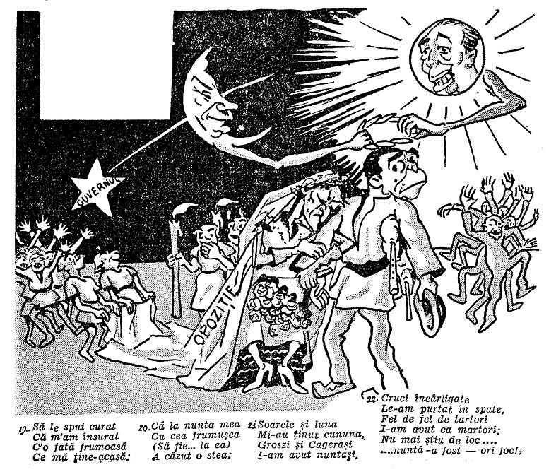 Anul 1937, ultimul an de mandat parlamentar al Partidului Național Liberal, singurul dus până la limita constituțională de 4 ani din întreaga perioadă interbelică, nu făcea nici el excepție de la regulă. Caricatura era folosită din plin de adversarii politici ai guvernului Gheorghe Tătărescu în ceea ce aceștia considerau a fi derapaje manifeste de la legalitate și democrație.